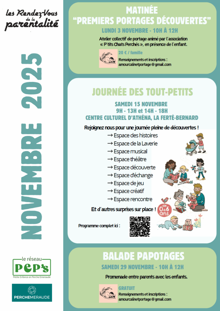 Les Rendez-vous de la parentalité : La journée des tout-petits La Communauté de communes du Perche Emeraude et ses partenaires vous donnent rendez-vous pour une journée dédiée aux familles et à la petite enfance. Au programme : Lire la suite