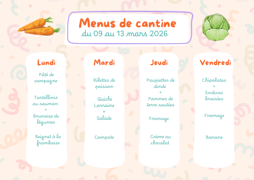 Menus du 9 au 13 mars
