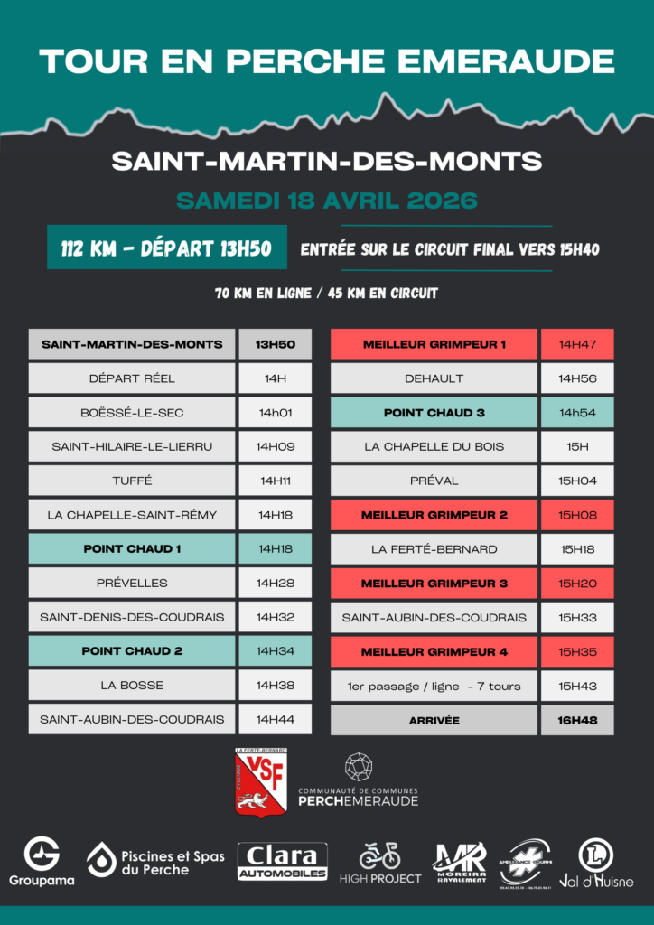 Organisée par le VSF Cyclisme avec le soutien de la Communauté de communes du Perche Emeraude, l’épreuve sportive conserve les points forts qui font son succès.